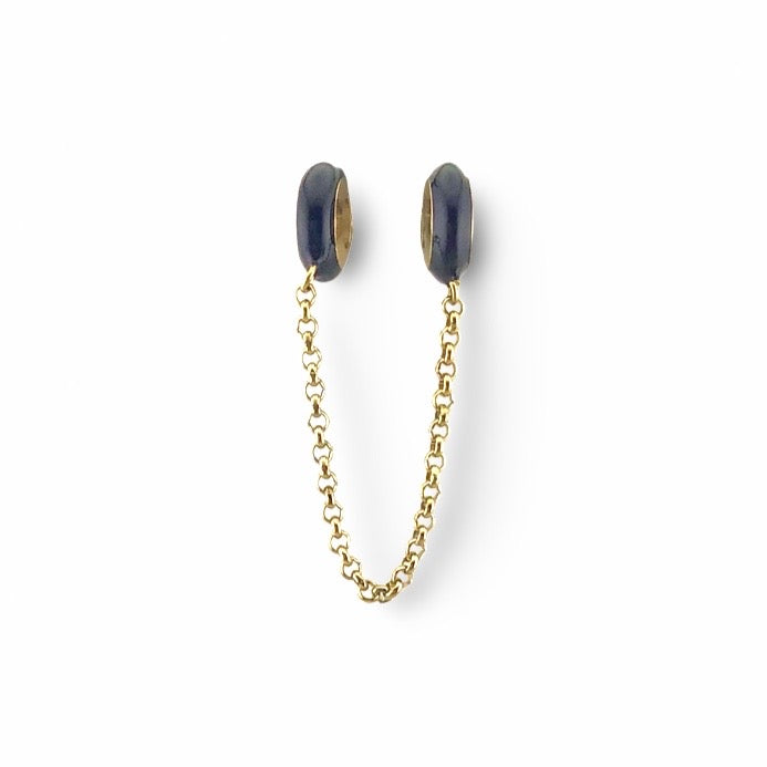 Dije para pulsera para seguridad consta de dos donas negras y una delicada cadena en dorado.