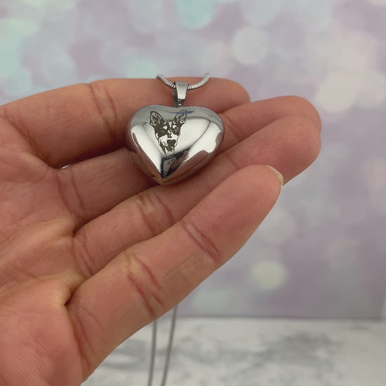 Collar personalizado con dije de corazón bombacho con una foto y atrás lo que quieras.