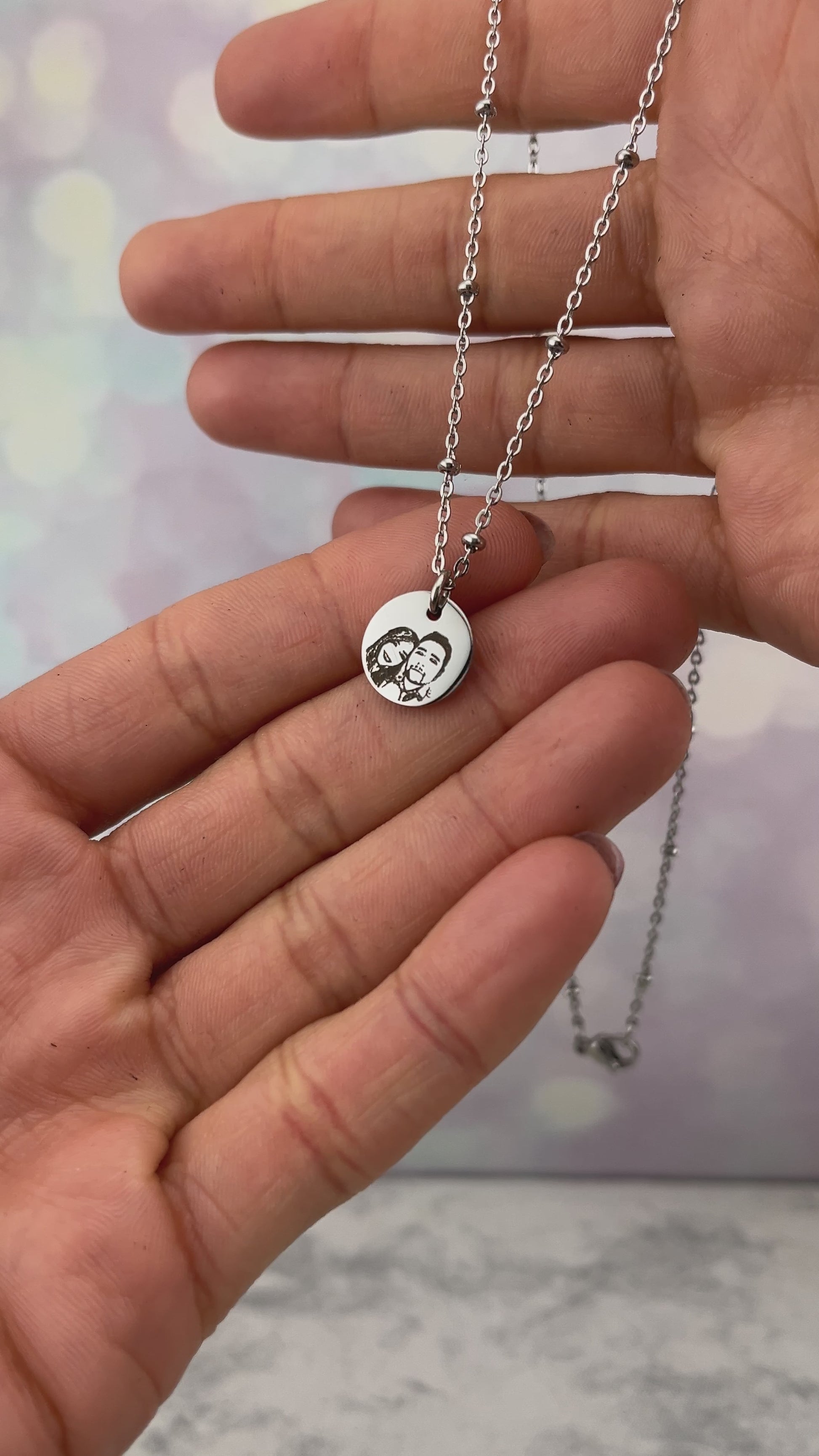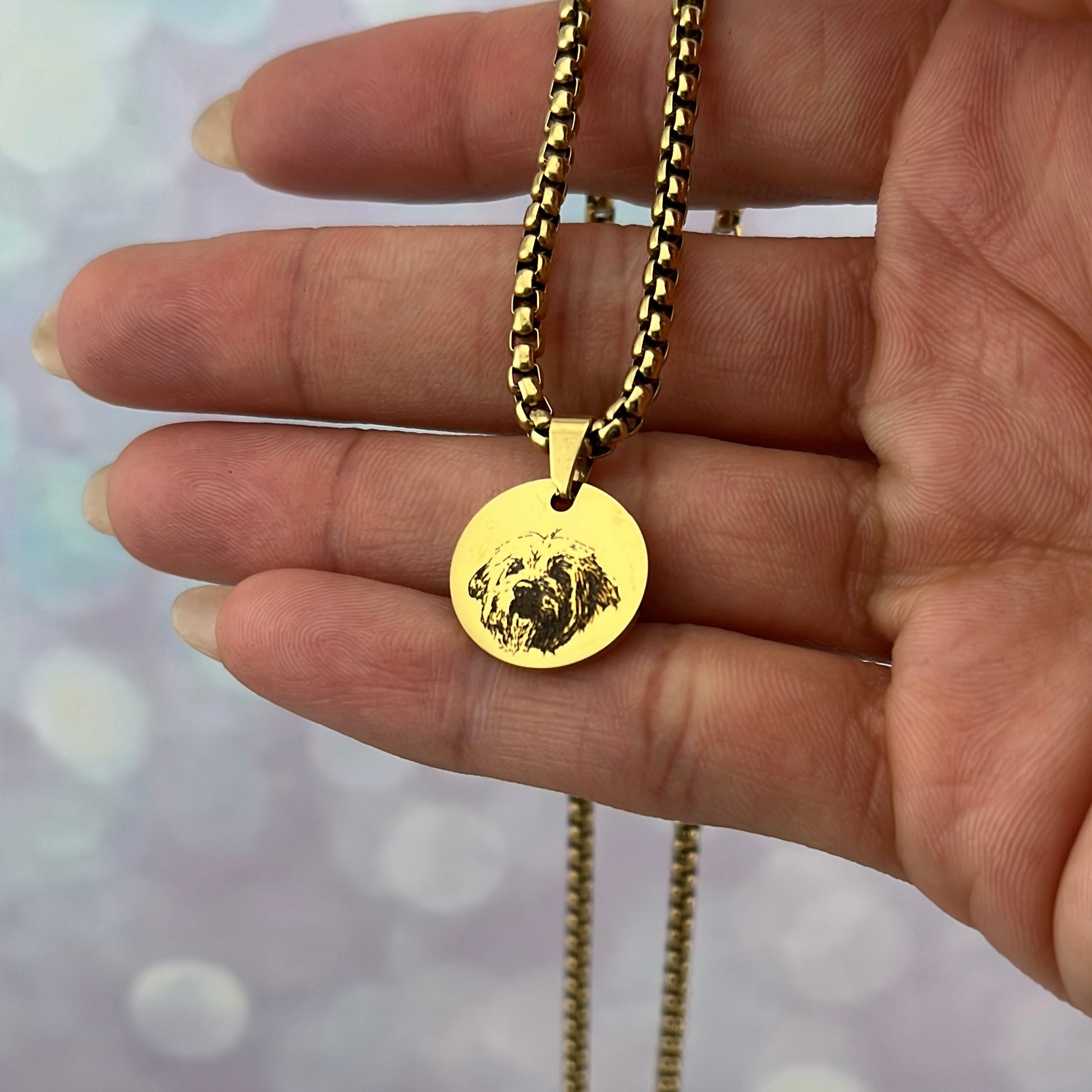 Collar personalizado con la foto de tu mascota y por atrás puedes grabar su nombre, fecha o frase.