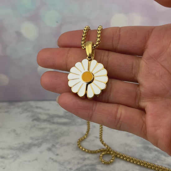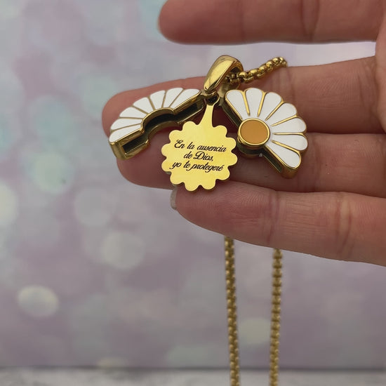 Collar personalizado con dije de flor que se abre y dentro tiene dije de florecita que se puede grabar con una foto y por atrás lo que prefieras.
