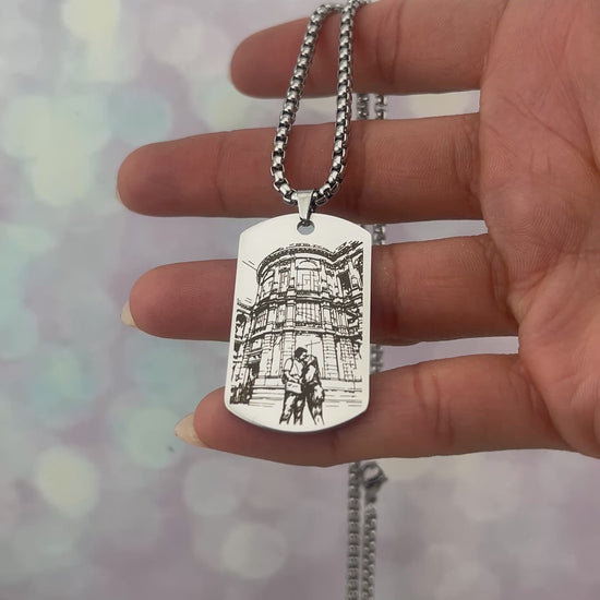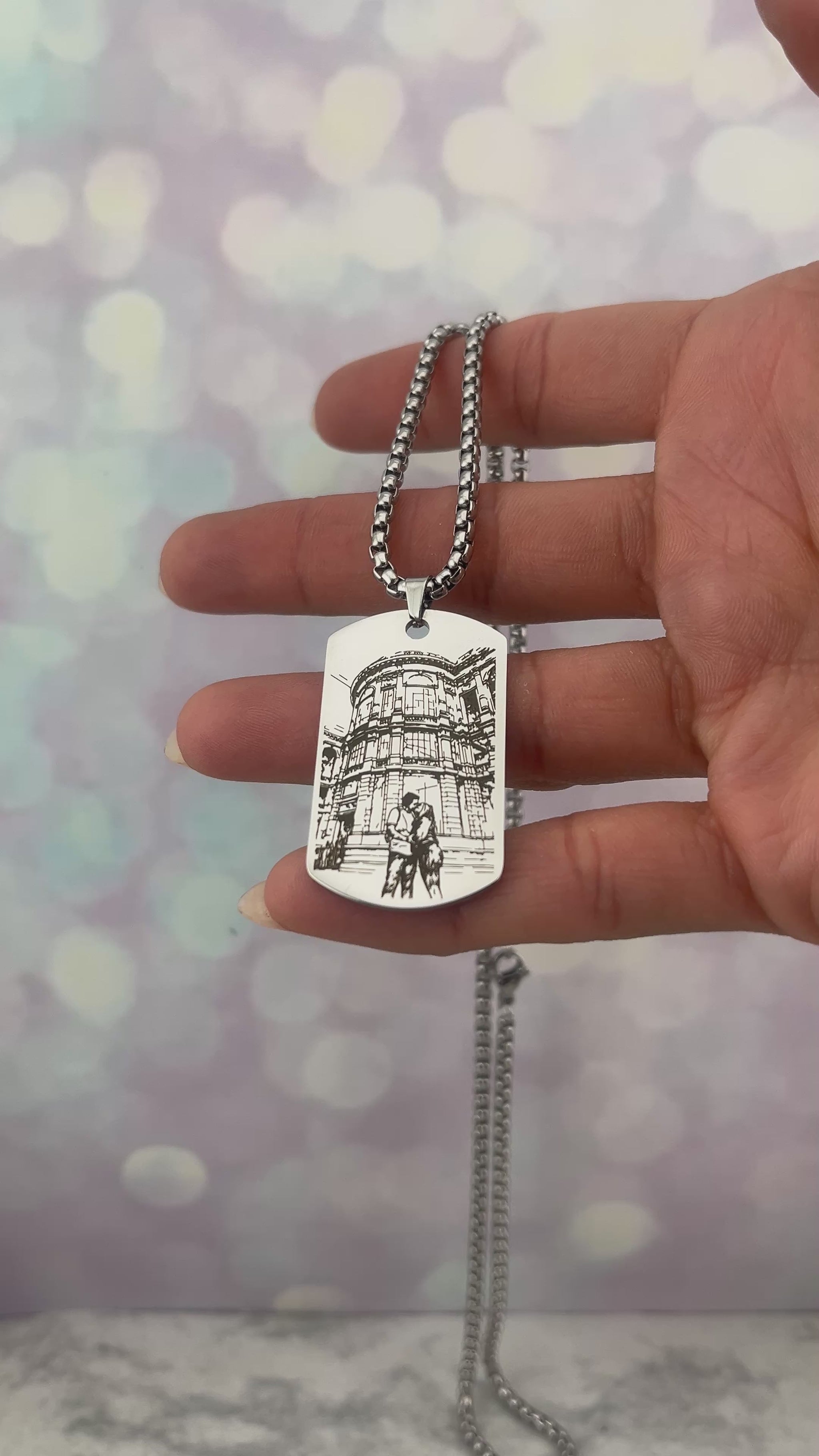 Collar de acero inoxidable para hombre con dije de placa militar. La foto de un lado y lo que quieras del otro lado.
