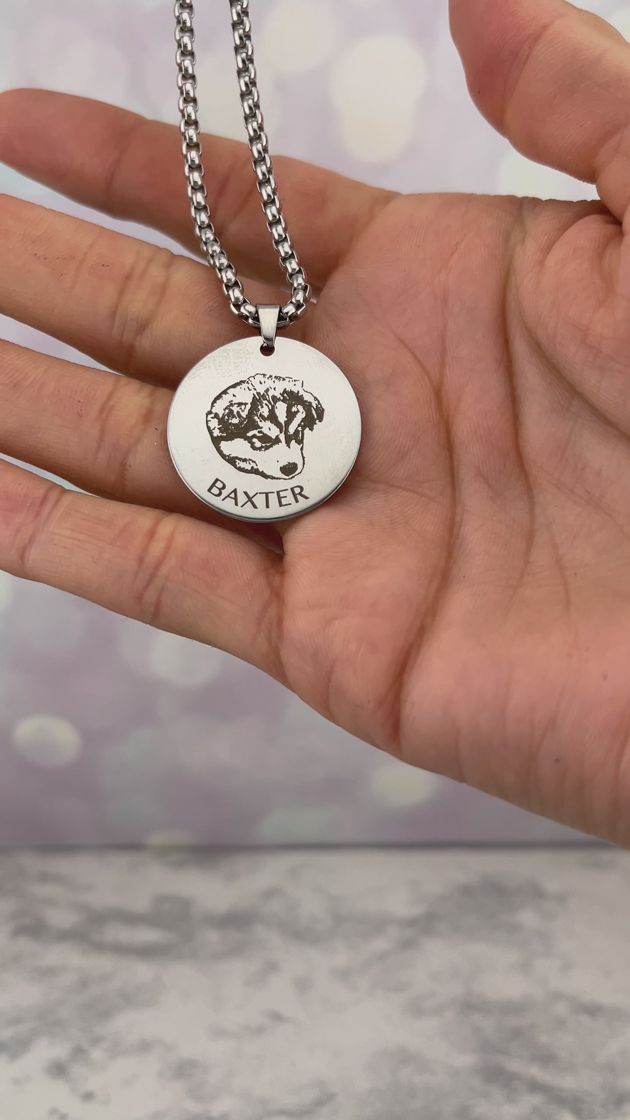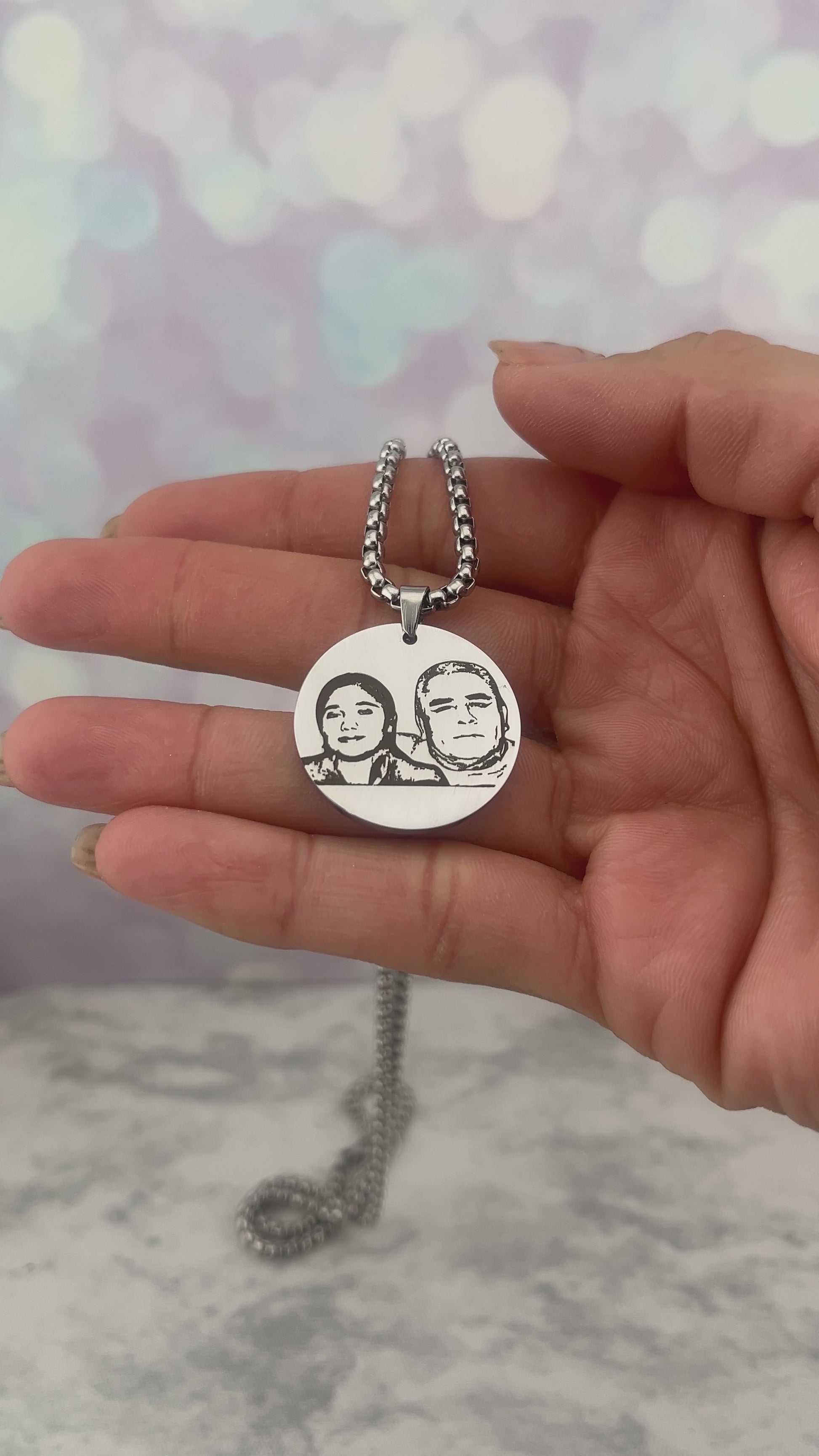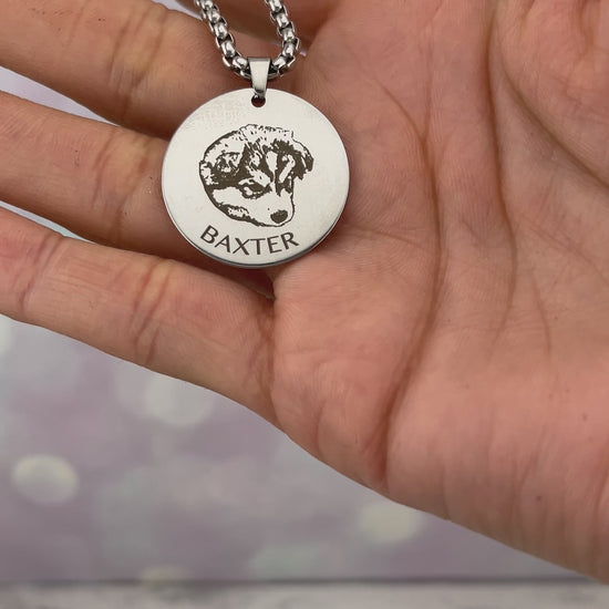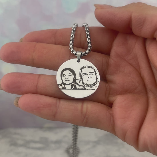 Collar de acero inoxidable unisex con dije redondo de ø 25 mm. La foto de un lado y lo que quieras del otro lado.