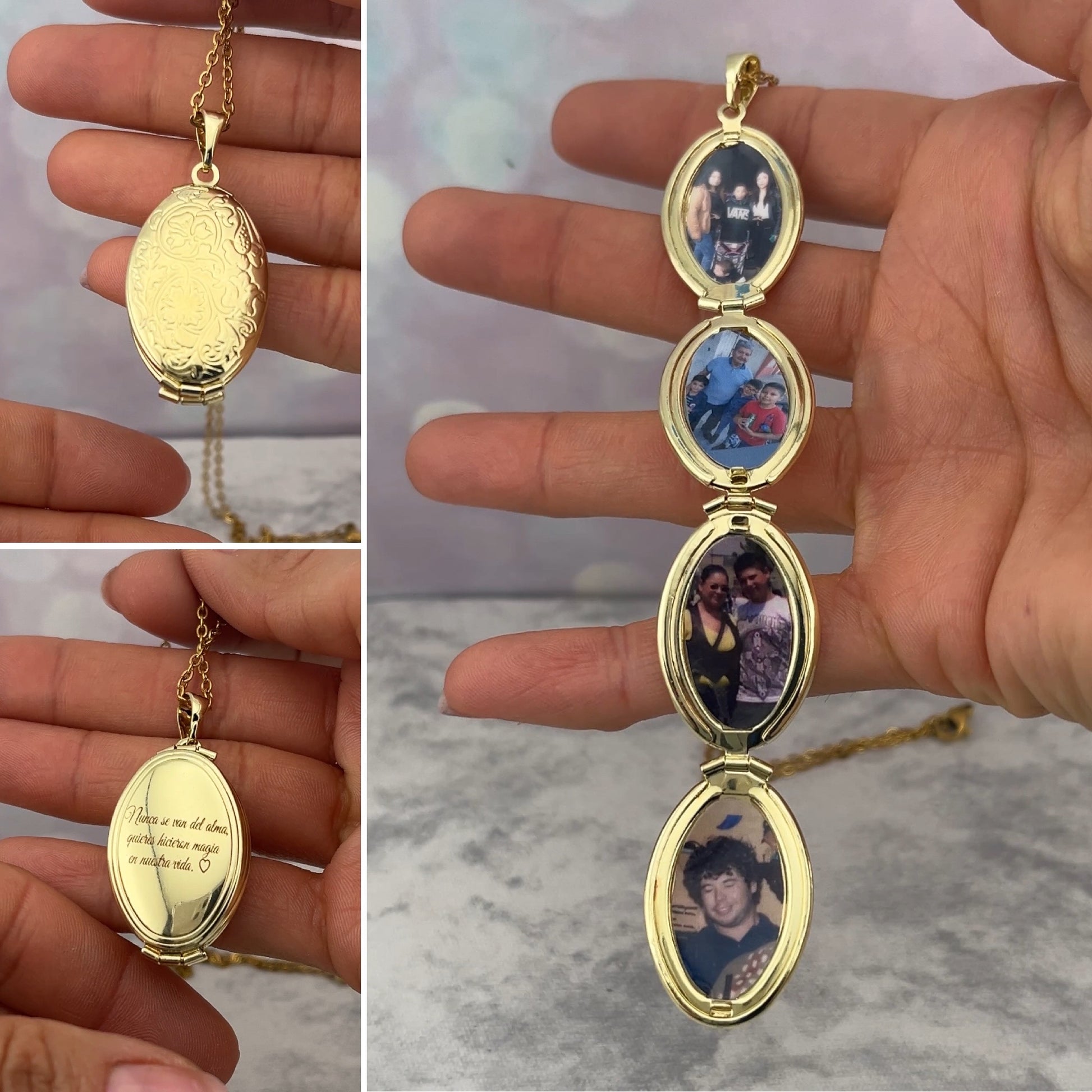 Collar de relicario grabado y con las fotos de tu ser querido.