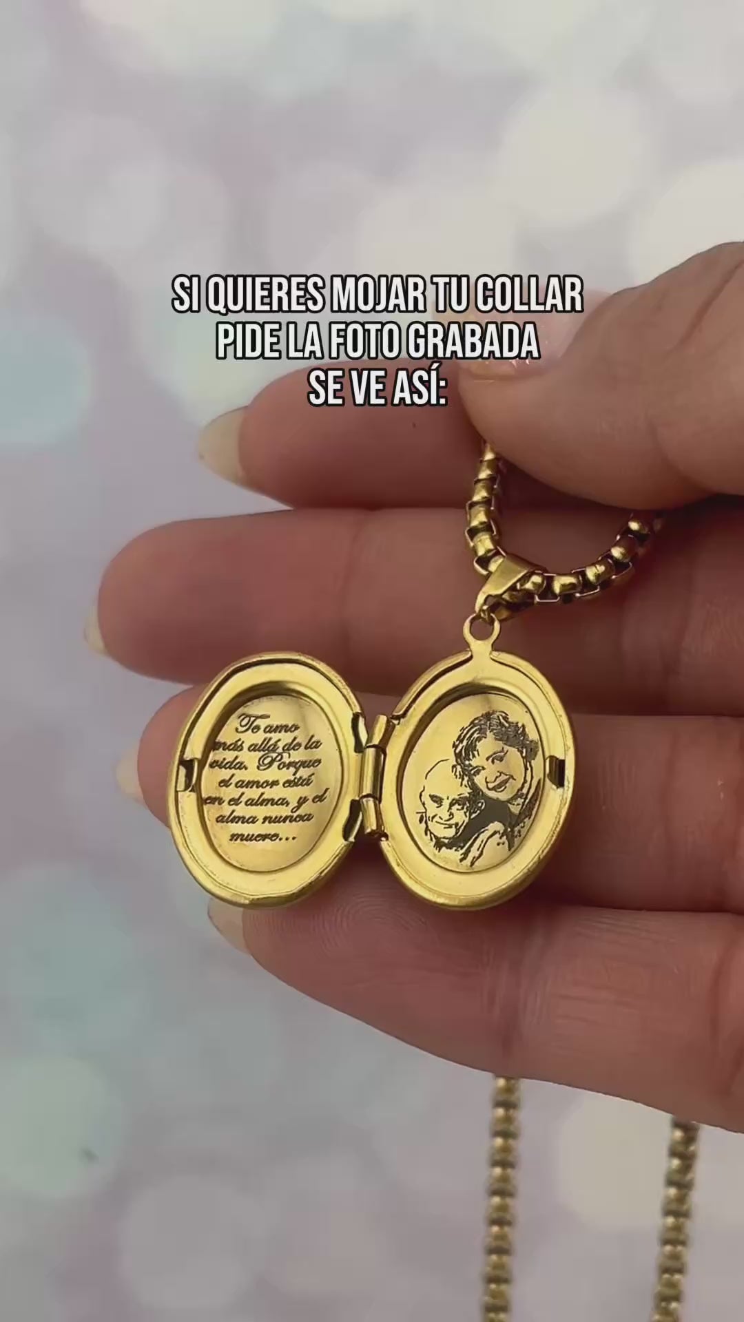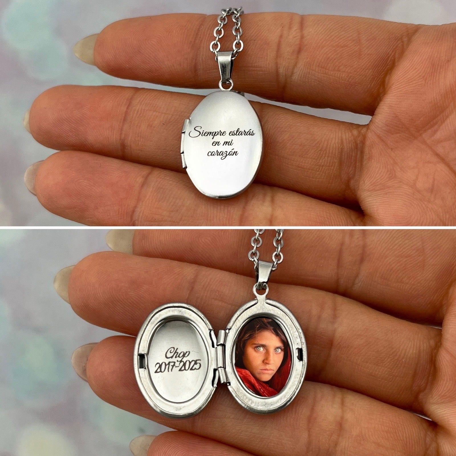 Collar de relicario grabado y con la foto de tu ser querido.