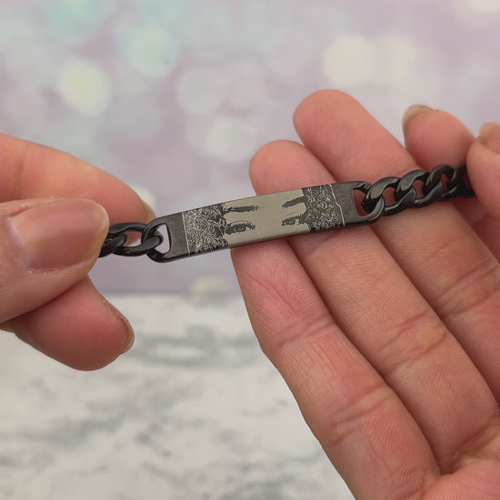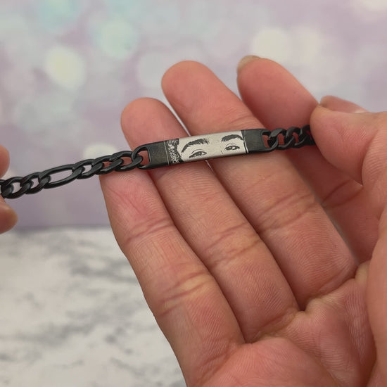 Pulsera de barra curva personalizada con foto y por atrás lo que quieras. Ten en cuenta que el grabado es de tamaño 6 mm x 30 mm.