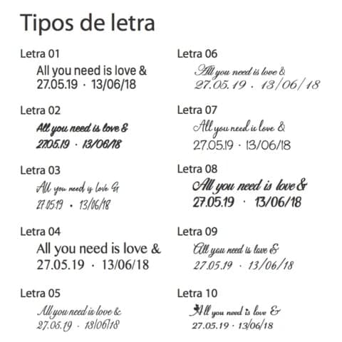 Sería grabado especialmente para ti con nombre, iniciales, números, números romanos, coordenadas, emojis o algún símbolo especial que tú quieras.