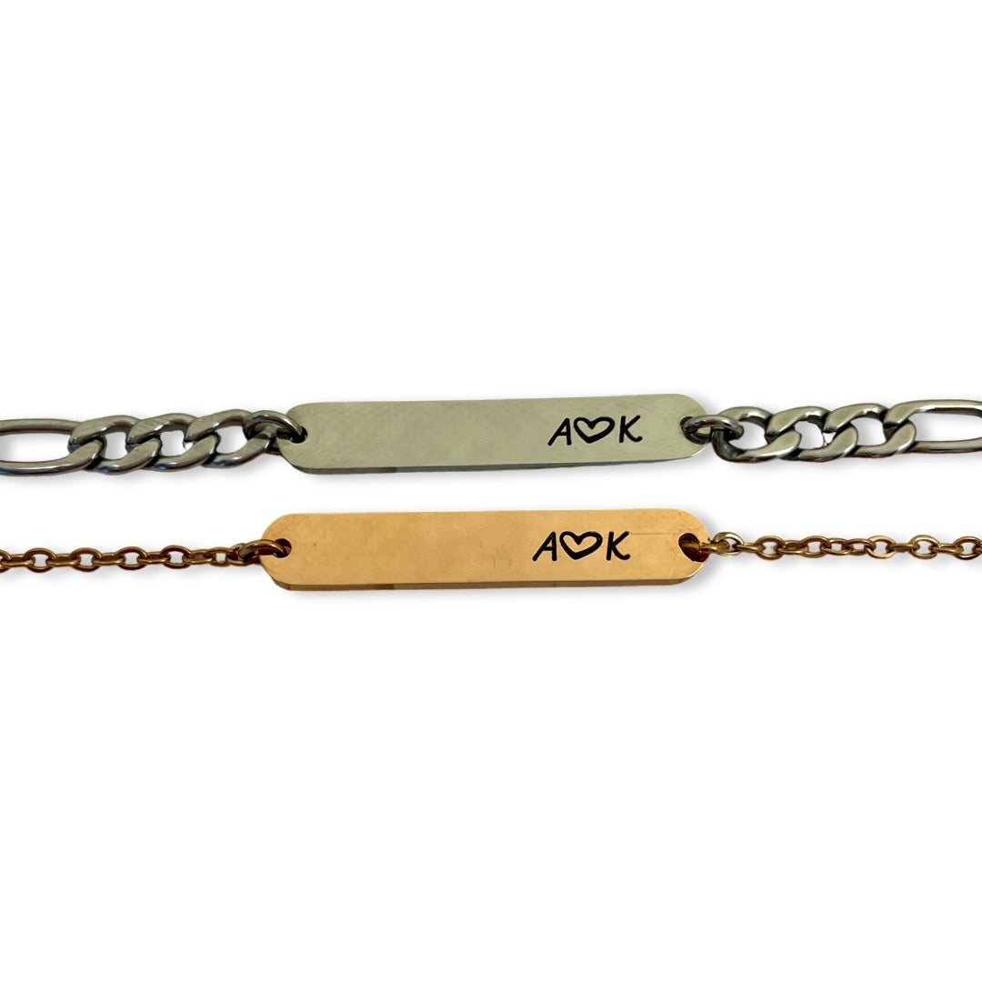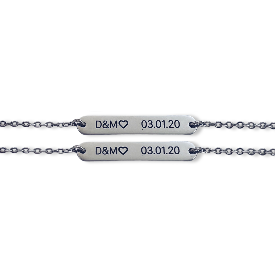 Pulseras para parejas personalizadas con fecha e iniciales de barra recta.